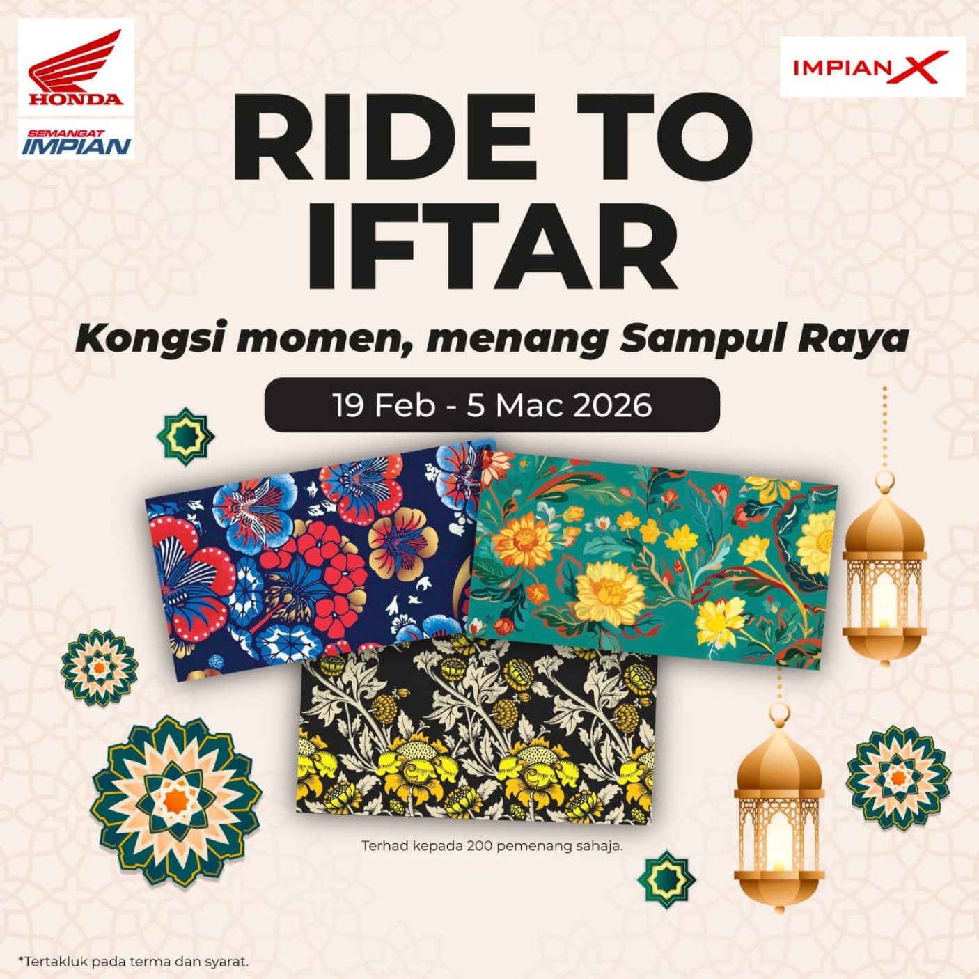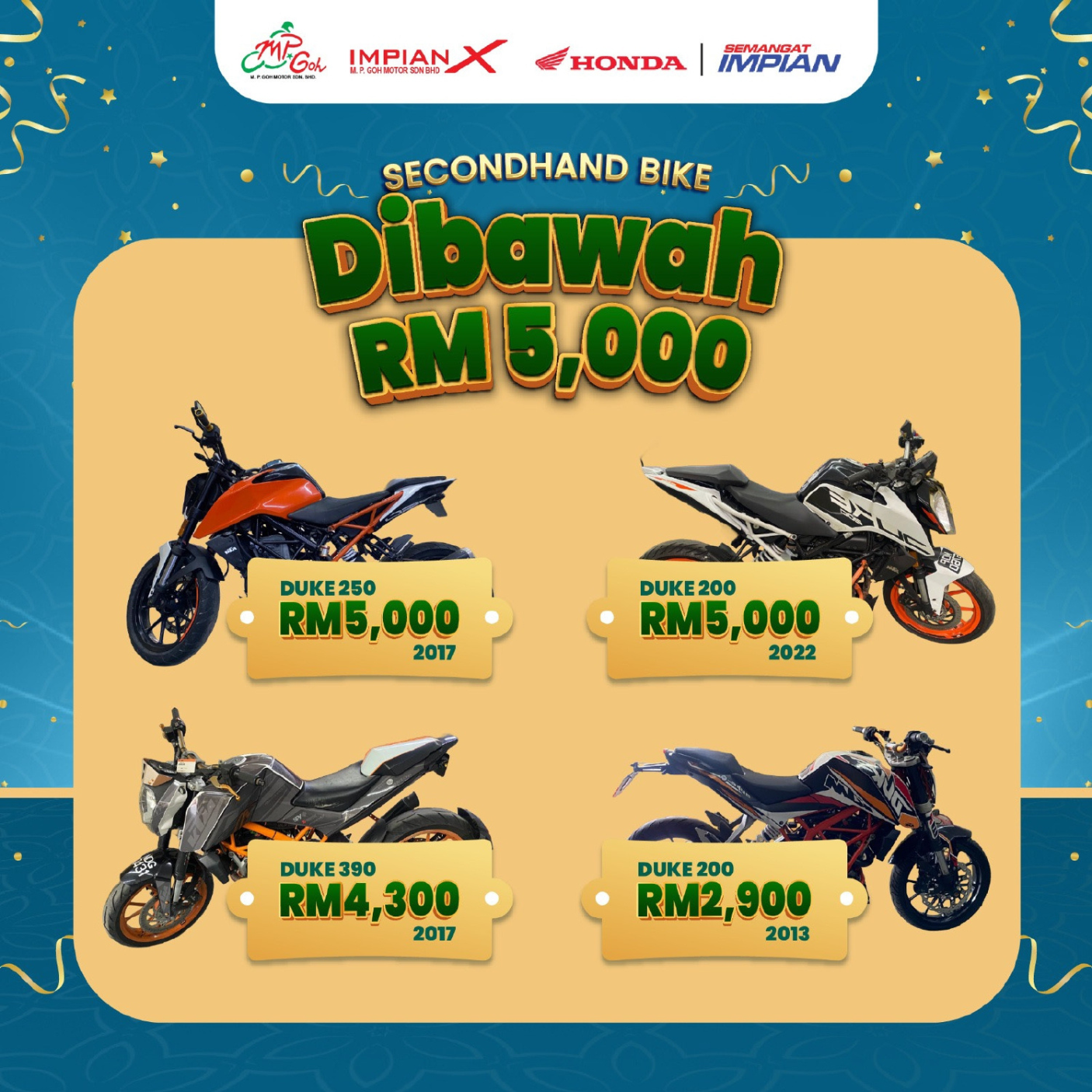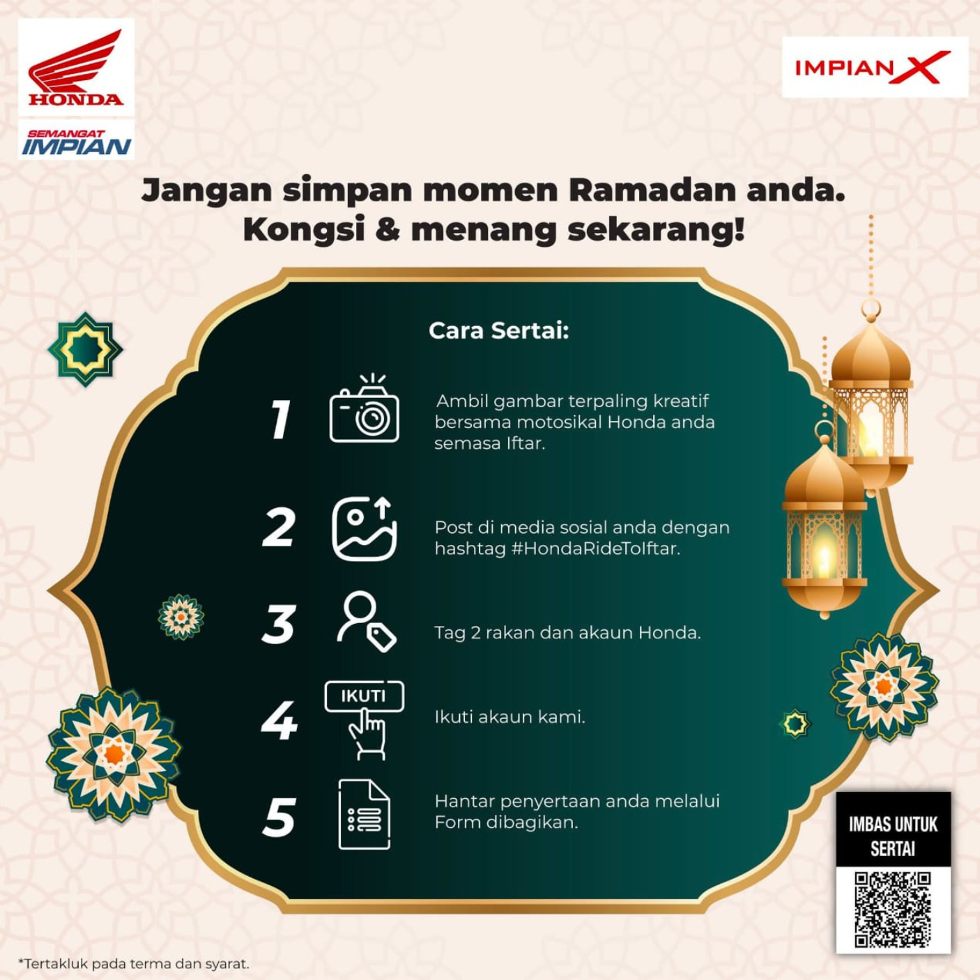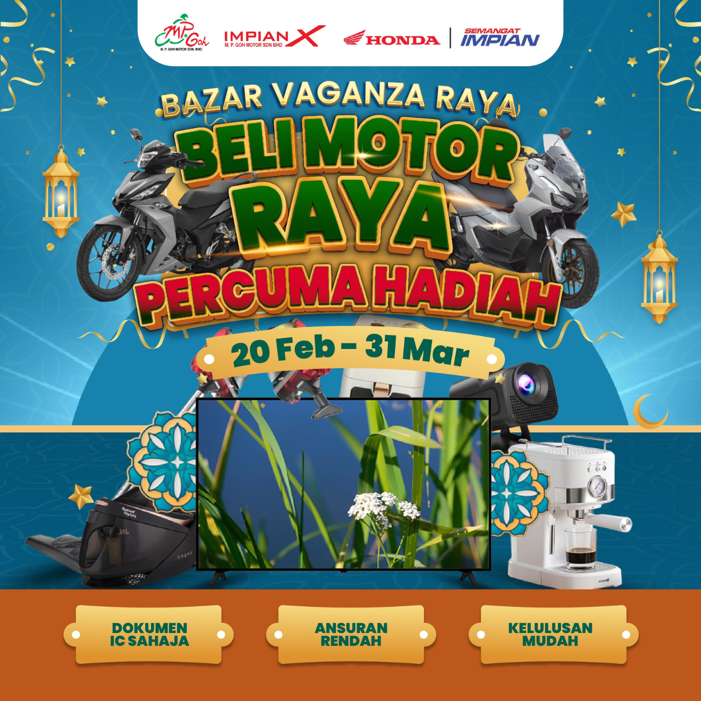 Campaigns & Promotions Serving Riders, Families, and Community for 50 Years Explore current offers and campaigns for Impian-X and Honda BigWing. Register Interest Whatsapp Us Register for Promotions Fill in your details to unlock exclusive Honda rewards and limited-time offers. We will send your promo details via WhatsApp. Full Name WhatsApp Number Select Promotion Low Interest Rate Campaign Rider Starter Pack (Free Gifts) Cash Rebate / Discount Service & Maintenance Promo Model of Interest I want to receive the latest Honda campaign updates and vouchers via WhatsApp. Claim Promotion via WhatsApp